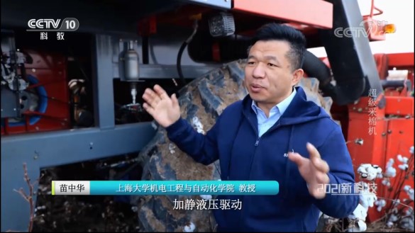 苗中华教授团队成果《2021新科技:超级采棉机》。作为棉花采收的智能装备,采棉机是智能农机装备中最为复杂的收获机械,节目中苗中华教授接受采访并讲述了圆包式采棉机智能控制技术及系统。苗中华教授团队近十年主要从事智能装备与机器人控制技术及其应用实践研究,聚焦“装备智能化、单体自主化和群体智慧化”的基础理论探索、关键技术突破和工程应用实践,将研究成果应用于智能采棉机、农业机器人等特种机器人的野外作业。