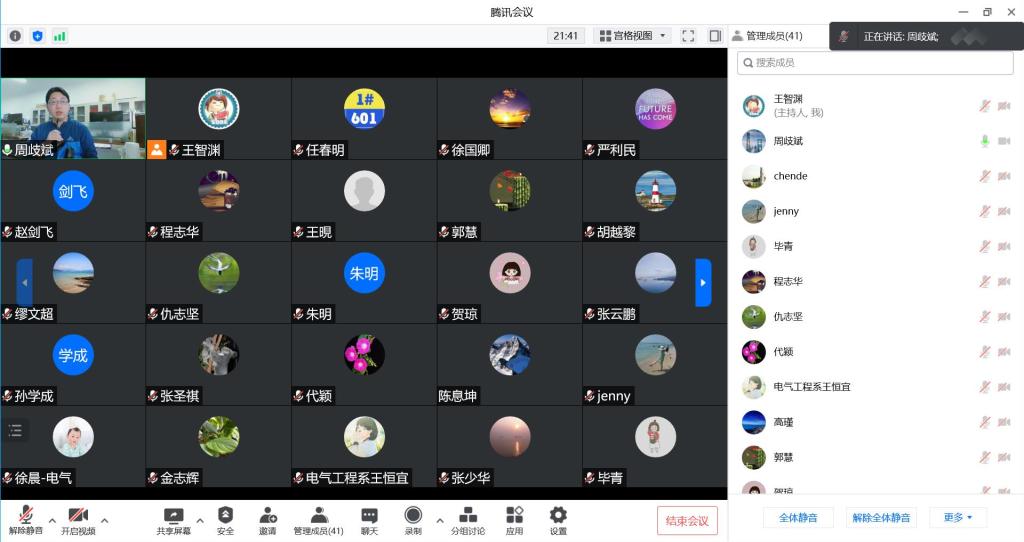 最后,系主任汪飞老师对本次会议进行总结。他感谢全系教师此次的全员参会以及大家在疫情期间的辛勤付出与理解配合。希望大家继续强化责任意识,发扬电气工程系在各项工作中团结向上的良好精神风貌,将各项工作做实做细,积极响应学校政策,关心关爱学生,及时反馈跟进,凝心聚力、共克时艰,早日重返校园!