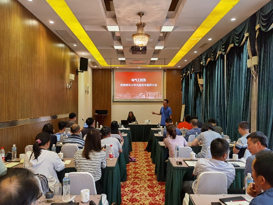 随后,电气工程系主任汪飞老师主持师德专题教育动员会及师德师风与学风建设专题研讨会。汪老师向大家传达了教育部召开教师思想政治和师德师风建设经验交流暨师德专题教育启动部署会的会议精神、教育部关于在教育系统开展师德专题教育的通知、188金宝搏中国官网