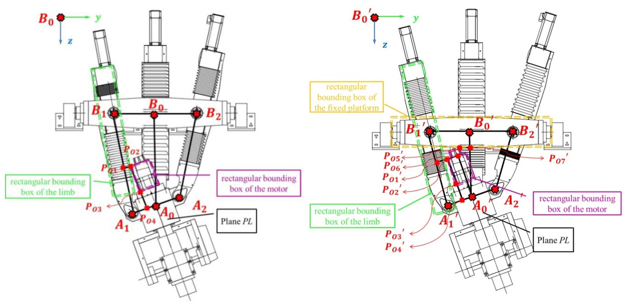 在本文中,作者基于一种五自由度混联机器人,对与性能密切相关的机器人结构参数进行了优化设计。混联机器人结合了并联机器人、串联机器人的结构和性能特点,在机械加工方面具有良好的应用前景。作者从运动范围、刚度和运动性能的角度,提出了一种更全面、更合理、更符合实际的参数优化设计方法。作者构造了基于包围盒理论的无干涉的运动范围指标,并设计了基于并联结构刚度修正模型的最大和最小刚度值指标,以及基于条件数的综合运动性能指标。此外,作者从安装条件、关节运动和载荷限制、数据有效性方面约束了结构参数优化的可行区域。优化结果表明,具有更好运动范围的结构参数方案具有更高的优先级。作者进一步分析了优化结果中的结构参数和优化目标之间的相关性,以指导优化模型的改进。作者的研究成果为该混联机器人的详细设计和样机实现奠定了基础,同时也为其他结构的混联机器人的参数设计提供了参考。