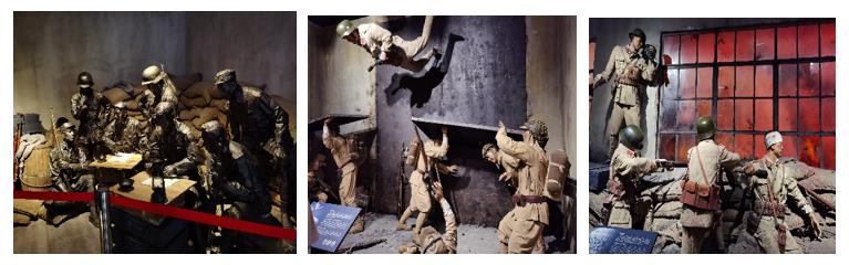 位于苏州河北岸的原交通银行与北四行(金城银行、中南银行、大陆银行与盐业银行)的联合仓库,也就是现如今的上海四行仓库抗战纪念馆见证了1937年以谢晋元为指挥官的“八百壮士”顽强抗击日本侵略者的英勇壮举。抗日战争期间,中国国民党国民革命军第三战区88师524团的谢晋元中校率领数百名士兵抵抗了日本军队四天四夜的进攻,毙敌200余,即历史上有名的“八百壮士保卫战”。这次保卫战的成功,重新振奋了因淞沪会战受挫而下降的中国军民的士气。如今,在四行仓库的一面颓墙之上仍清晰可见当初战斗时所留下的一累累弹孔,让大家依稀还能感受到当时战斗是多么的惨烈。