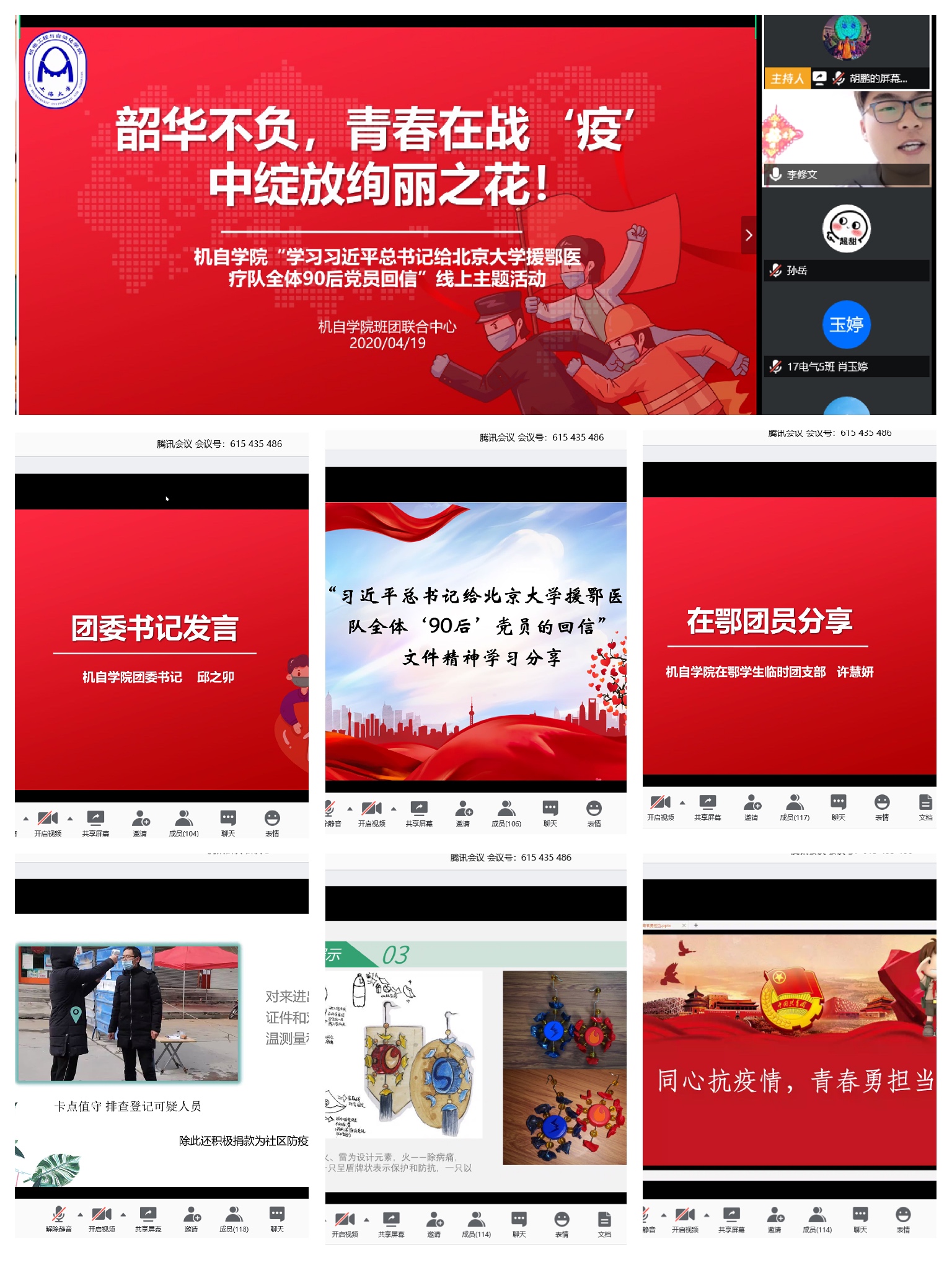 机自学院于4月19日下午开展了“韶华不负,青春在战‘疫’中绽放绚丽之花”——机自学院“学习习近平总书记给北京大学援鄂医疗队全体90后党员回信” 线上主题党日、团日活动。