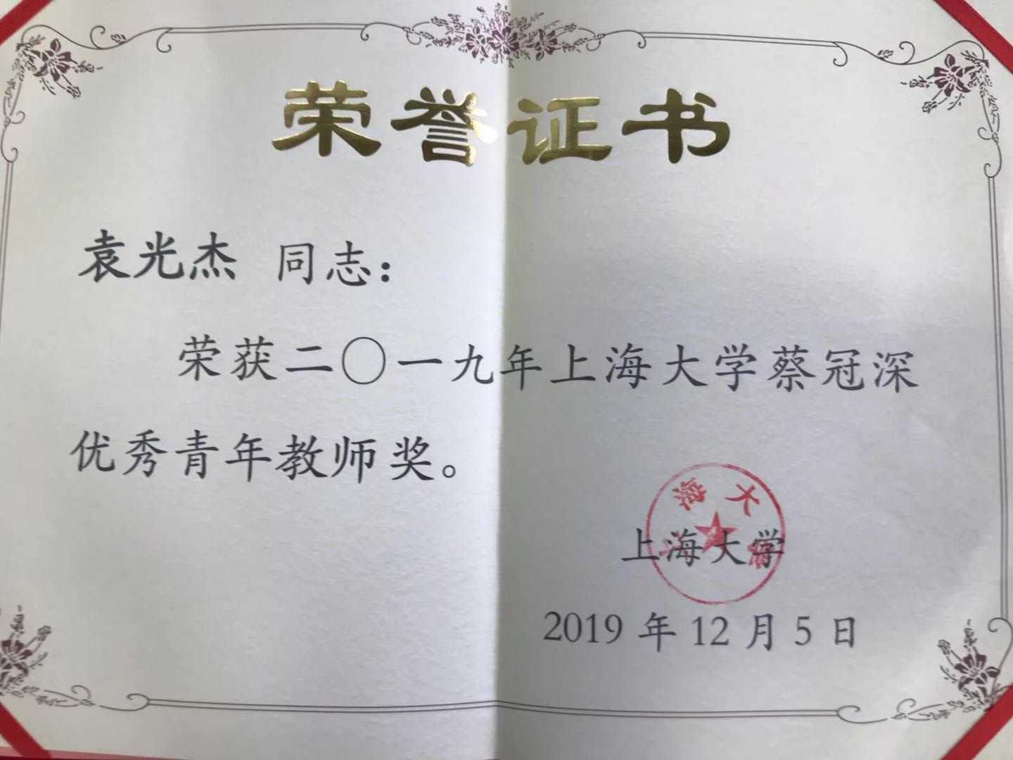12月30日,188金宝搏中国官网 2019年度“蔡冠深优秀青年教师奖”颁奖典礼在校本部东区经管大楼一楼蔡冠深讲堂举行。经学院推荐、188金宝搏中国官网 蔡冠深教育奖励基金评选委员会评审,今年全校共有16位青年教师荣获此奖,我系青年教师袁光杰获此殊荣。