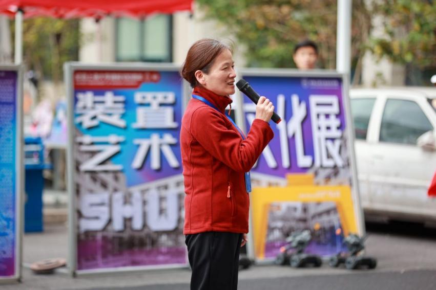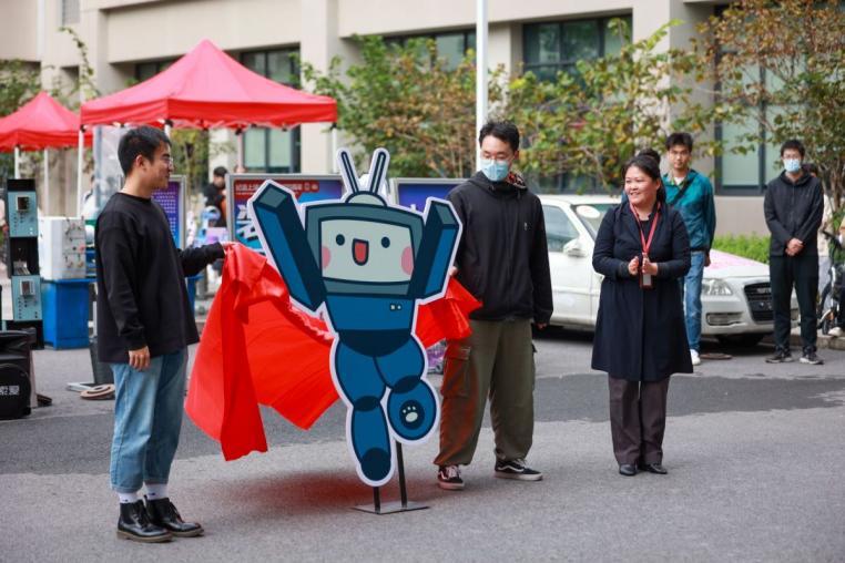 随后,机自学院院长于瀛洁为装置文化艺术展吉祥物揭幕。