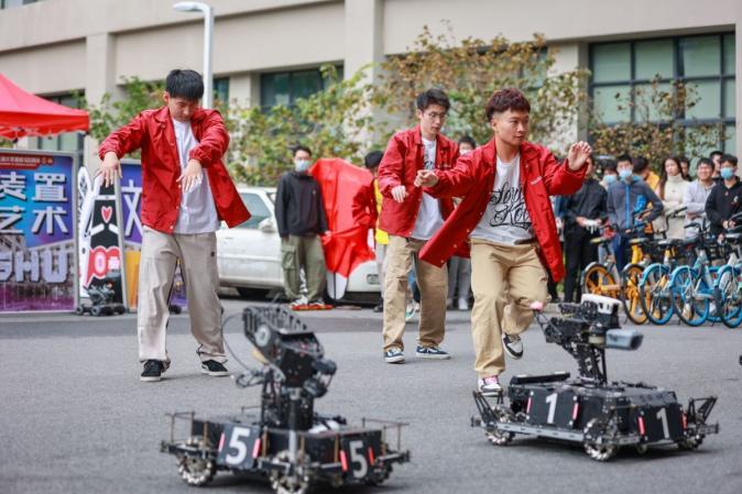 开幕式伊始,街舞社同学、Robmaster 战队、工训中心机械狗为展览带来青春洋溢、活力四射的“人机共舞”。