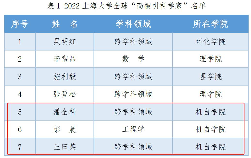 共7人上榜)。入榜这份备受期待的名单的自然科学家和社会科学家均发表了多篇高被引论文,其被引频次位于同学科前1%,彰显了他们在同行之中的重要学术影响力,是所在研究领域具有重大和广泛影响的顶尖科学人才。