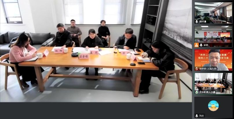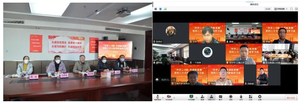 机自学院党委邀请共建单位宝山区顾村镇党委、南通市海门区正余镇党委开展“共学二十大,共谋新发展”党的二十大精神联组学习会。三家单位党政班子全体成员出席了本次联组学习会,会议由机自学院党委书记陈方泉主持。