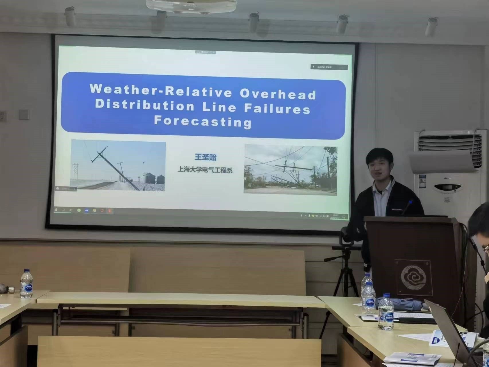 电气工程系相关情况。陈佩燕主任做《台风灾害风险评估技术研究与电力行业的应用》的报告,张帅副主任做《党建业务下台风观测业务工作进展》报告,电气工程系王圣贻博士做《天气相关的架空配电线路故障预测》报告,周岐斌博士做《台风灾害对电力系统的影响及其应对措施》报告。