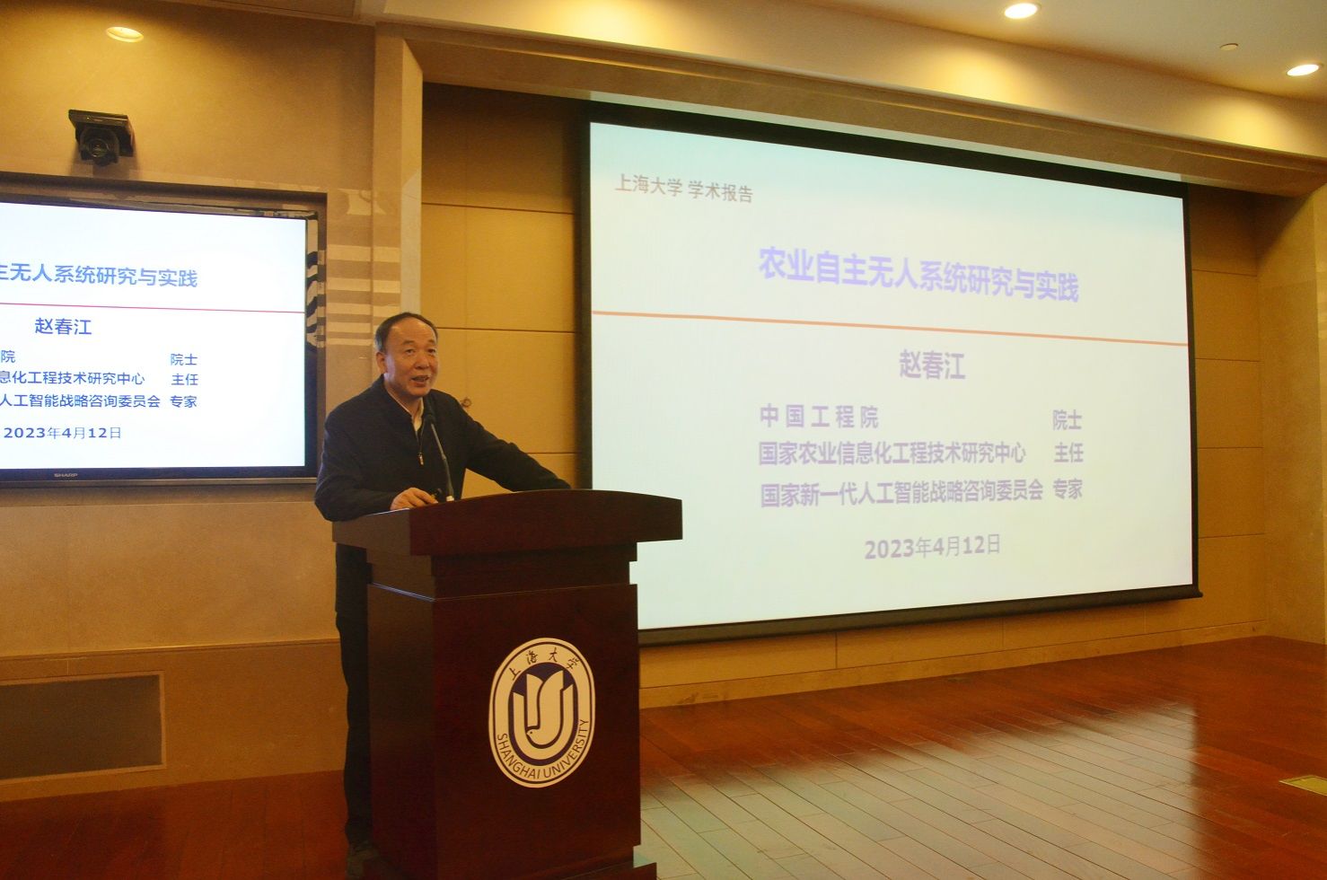 机自学院“集智学术讲坛”第3期在宝山校区乐乎新楼学海厅顺利举行。本期邀请到国家农业信息化工程技术研究中心主任赵春江院士为我院广大师生做题为《农业自主无人系统的研究与实践》学术专题讲座。学术讲座开始前,188金宝搏中国官网
