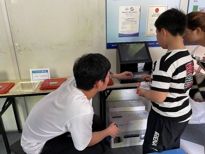 很多小朋友也一大早就来到了实验室进行参观。实验室老师为他们详细讲解了OLED显示设备的制造工艺,小朋友们对此表现出了浓厚的兴趣,也积极阅读了科技书刊,参与了实验室为他们准备的科技知识小问答。
