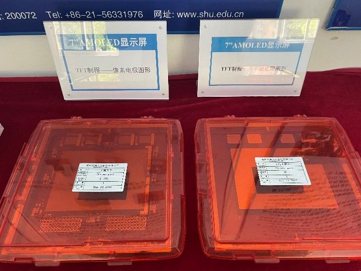 实验室此次科技开放日的主题是“智能显示与未来生活”,5月27日科技开放日当天一早,实验室就迎来了热衷科技的市民朋友们。实验室的老师为前来参观的市民朋友展示了光刻掩模板样板和光刻薄膜(如下左图)。同时,也展示了实验室的薄膜柔性显示屏(如下右图)。