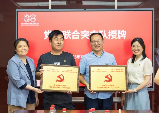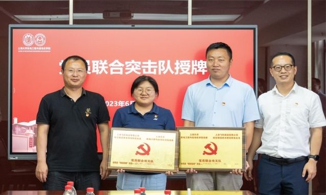 本次共建还将发挥各自在多专业学科、民机总装制造领域方面优势,在双方合作的重点项目上成立党员技术攻关团队,制定执行行动清单,定期开展项目技术交流,优势互补,推进相关项目及技术成果转化。于瀛洁院长、杨扬副书记、易俊兰书记、李徐辉书记分别为工信部、市科委揭榜挂帅项目组授予党员联合攻关队授牌。