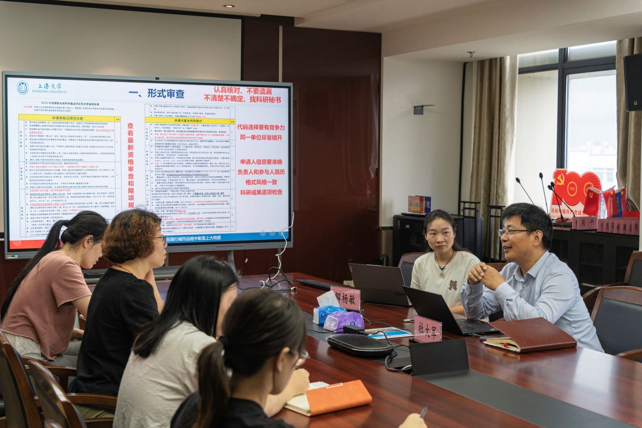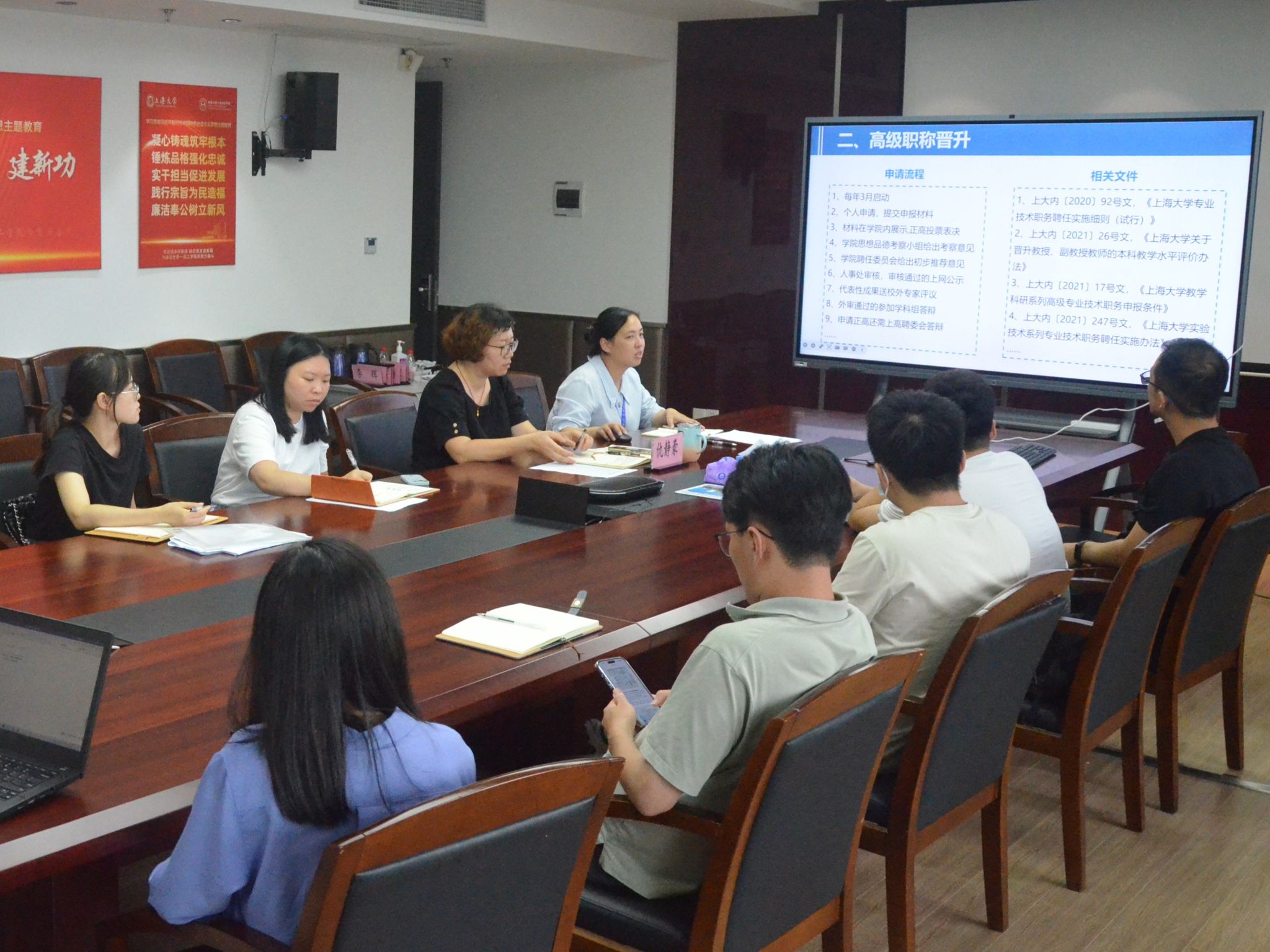 培训会下半场学院人事干事黄文彬介绍职称评定相关工作,学院科研秘书肖平介绍学院科研相关工作;新进教师就职称评定标准、科研项目申报等关心的内容积极互动交流。
