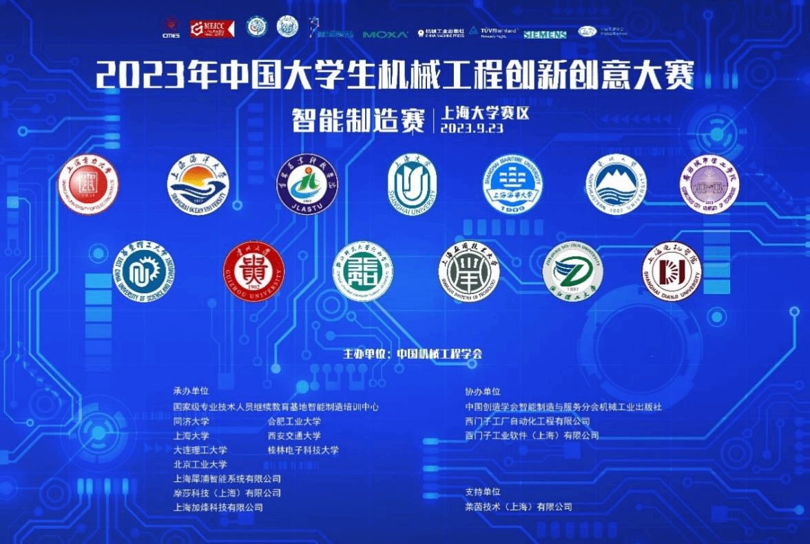 、同济大学等多所高校及企业联合承办;中国创造学会智能制造与服务分会、机械工业出版社、西门子工厂自动化工程有限公司、西门子工业软件(上海)有限公司协办;莱茵技术(上海)有限公司支持的2023中国大学生机械工程创新创意大赛——第六届智能制造大赛188金宝搏中国官网