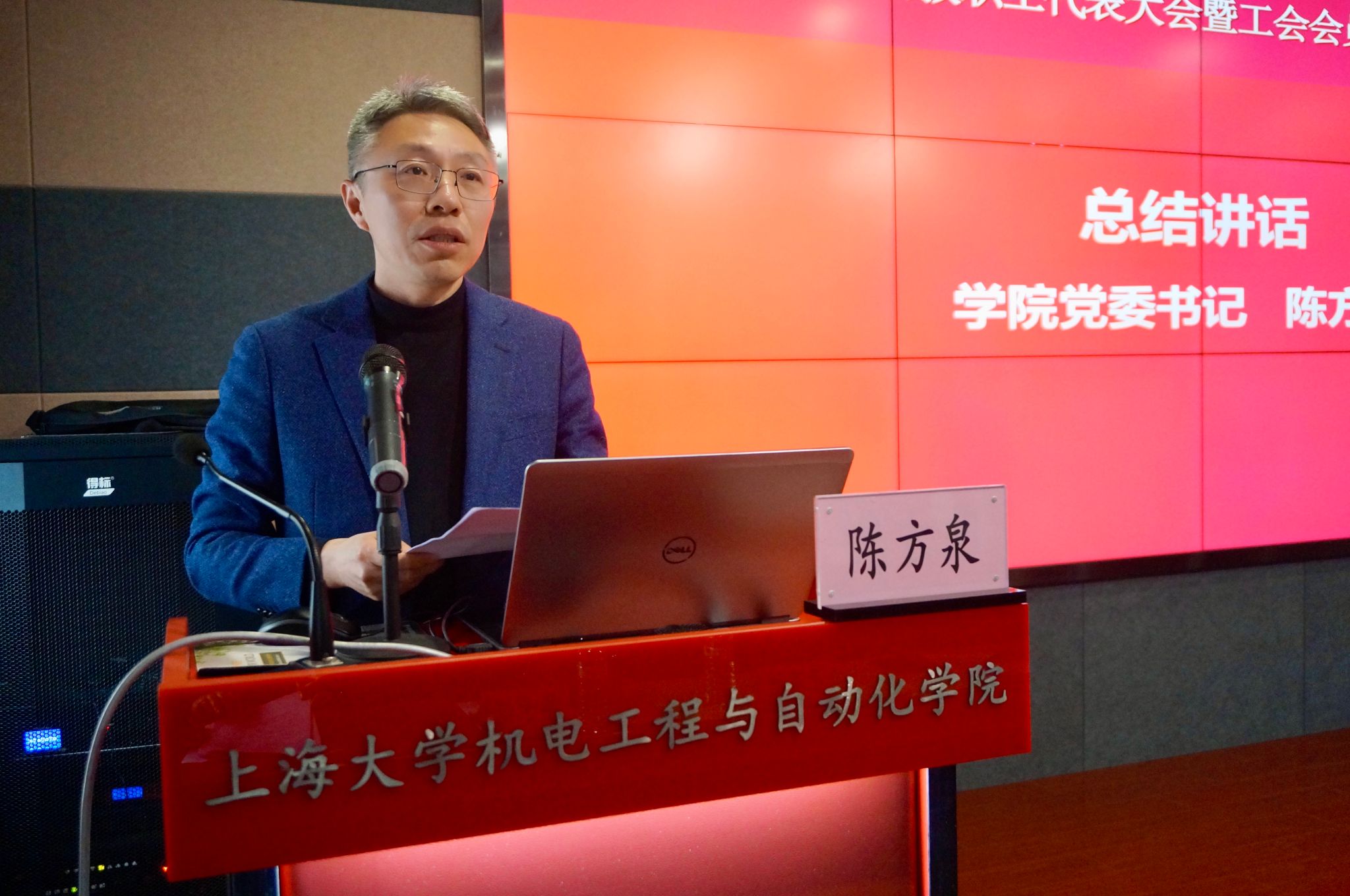 会上,学院党委书记陈方泉指出,一是要进一步提高政治站位,学习贯彻习近平新时代中国特色社会主义思想,团结凝聚学院教职工,在立德树人、一流学科建设、服务国家战略、服务上海城市发展等工作中展现更大作为。二是要进一步加强双代会代表的履职能力和水平建设,不断深化工会组织建设与改革创新,当好教职工信赖的“娘家人”。三是要进一步完善工作机制,不断加强“双代会”自身建设,提升治理体系和治理能力。他希望广大教职工要以本次“双代会”召开为契机,迎接考验,稳进提质、奋力攀登,不断推动学院高质量发展。