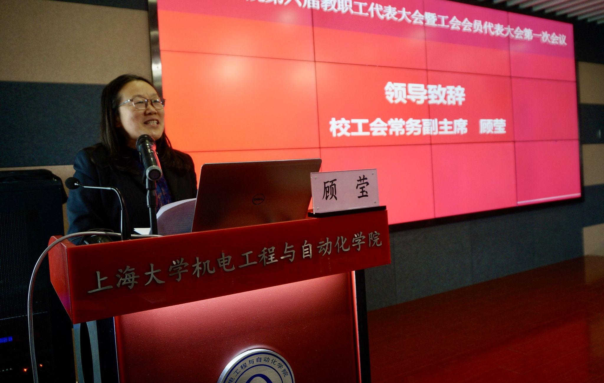 校工会常务副主席顾莹在本次会议上致辞。顾老师对机自学院工会过去一年的工作给予了高度评价,并感谢了上一届工会委员们的无私奉献和辛勤付出,期待新一届工会委员们能承前启后,继往开来,关注教职工的需求和权益,凝聚广大教职工的力量,共同推动机自学院的全面发展。