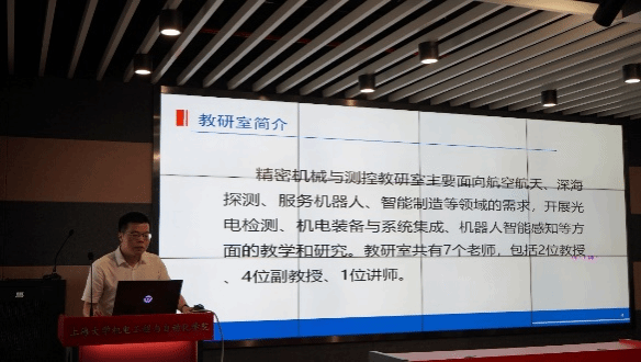 陆明老师介绍了其所在的王永国教授课题组研究成果,其聚焦于加工工艺与切削大数据研究,通过融合传统制造业与现代信息技术,开发了基于大数据的工艺刀具管理系统并成功实现产业化。金滔老师介绍了其所在的田应仲教授课题组以及共融机器人的基本概念,分享了研究组在机器人高精度自主定位与环境智能理解、可变拓扑结构的轻量化欠驱动连续体机构设计、软体机器人结构-驱动-感知一体化技术等方面的研究成果。张曦副教授向同学们介绍了精密机械与测控教研室的基本情况,以及该教研室在智能制造、深海观测、精准医学和智能驾驶四个领域的研究成果。冯杰才副教授介绍了其课题组在先进激光智能制造中的研究,该课题组面向国家航空、航天和核电等领域高端装备精密制造要求,聚焦超快激光微纳制造、大功率激光焊接和清洗等激光制造技术与装备攻关。贾文川老师介绍了其课题组在高性能足式仿生机器人方向的研究工作,详细介绍了电动四足机器人、双足机器人等不同形态仿生机器人的运动机构、运动控制等方面理论研究、技术开发的背景和进展。