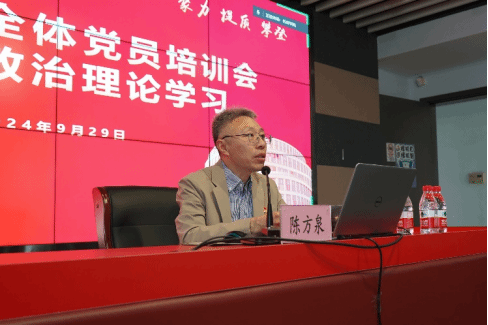 9月29日下午,机自学院在伯时会堂召开全体党员培训会暨教职工政治理论学习会。学院党委邀请上海市习近平新时代中国特色社会主义思想研究中心研究员陈荣武教授作“以进一步全面深化改革开辟中国式现代化广阔前景——学习贯彻党的二十届三中全会精神”专题报告。全体师生党员、全体教职工通过线上与线下相结合的方式参加了此次会议,会议由学院党委书记陈方泉主持。
