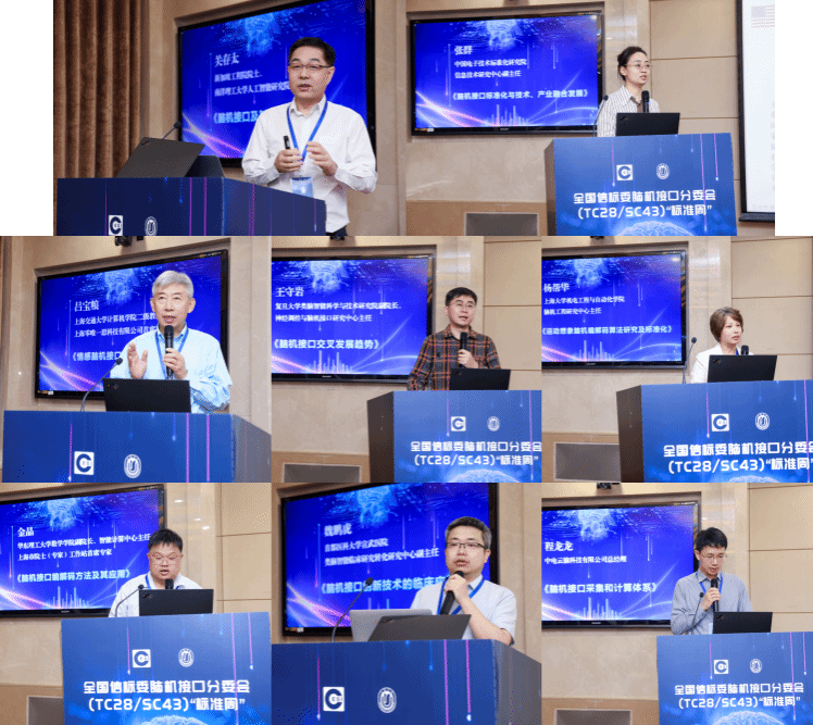 关存太教授作了题为《脑机接口与康复研究的进展》的主旨报告,深入分析了脑机接口技术在康复领域的应用现状与未来趋势。中国电子技术标准化研究院信息技术研究中心副主任张群则围绕《脑机接口标准化与技术、产业融合发展》主题,探讨了标准化工作对脑机接口产业的推动作用。吕宝粮教授聚焦《情感脑机接口的商业化与标准化》,为与会者呈现了情感脑机接口技术的广阔应用前景。王守岩教授团队深入剖析了《脑机接口交叉发展趋势》,推动技术创新与临床试验,为神经精神疾病全生命周期提供解决方案并拓展领域。杨帮华教授详细介绍了《运动想象脑机编解码算法研究及标准化》的最新成果,建立了多种肢体运动想象任务数据库及解码算法,研发康复设备,并推动标准制定。金晶教授汇报了《脑机接口编码方法及其应用》,分享了脑机接口解码技术的实际应用。中电云脑科技有限公司博士后马真做了《脑机接口采集和计算体系》的报告,介绍了适用于脑机接口领域的云计算技术。魏鹏虎副主任就《脑机接口创新技术的临床应用》作了精彩报告,介绍了脑机接口在临床康复领域的应用。