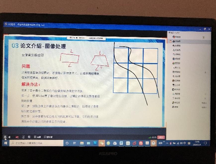 华晓青老师的文献阅读课《新型传感技术》采用超星平台上传资料和QQ视频平台分享屏幕实时讲解方式结合。通过视频点名,保证每位同学在线,音频状态良好,并且有良好的上课精神面貌;论文讲解的同学则采用屏幕分享的方式,把自己讲解的PPT的屏幕实时分享,并展开相关讨论;在屏幕分享讲解时,还可以用激光笔或者标记笔等在PPT屏幕上圈划,使听讲的同学可以跟着讲解思路进行,不至于分心,提高听讲学生的情绪,增强师生互动。