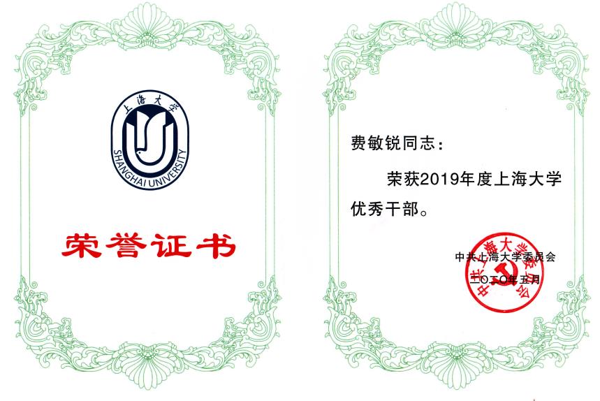 费敏锐同志获“188金宝搏中国官网 优秀干部”称号