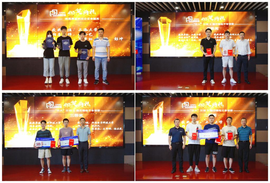 党委研究生工作部副部长徐义圣、上海集成电路技术与产业促进中心副主任姜祁峰、上海酷芯微电子有限公司创始人兼CEO沈泊、南昌黑鲨科技有限公司软硬件技术总监郑自浩为获奖团队颁奖。