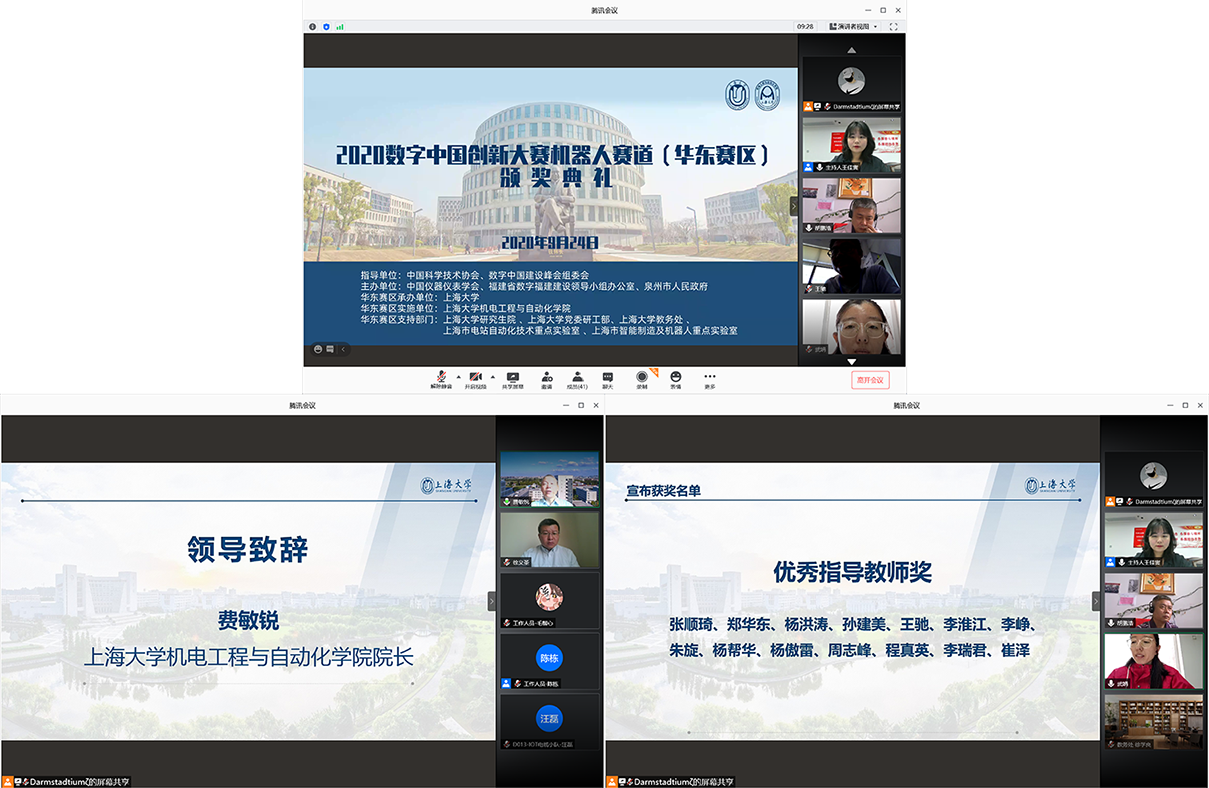 教务处副处长徐学良老师分别宣布一二三等奖、优秀指导教师奖和优秀组织奖获奖名单,其中获得一二等奖的作品将晋级全国总决赛。最后武娟老师对大赛情况进行总结,并期待晋级队伍能在总决赛中取得好成绩。至此,2020数字中国创新大赛机器人赛道华东赛区大赛圆满落下帷幕。