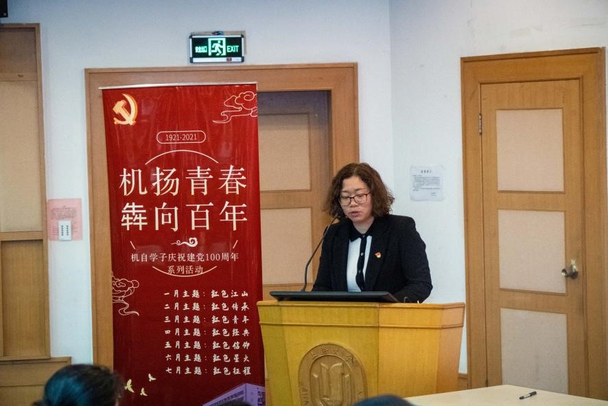 接着,学院党委书记于瀛洁老师讲话,于老师强调同学们作为九零后、零零后,要学史明理、学史增信、学史崇德、学史力行,要对标学习百年前首批中国共产党党员“九零后”的开拓者,锻造出一颗永远鲜活奋进的心。于老师郑重宣布机自学子献礼建党百年系列活动正式启动。