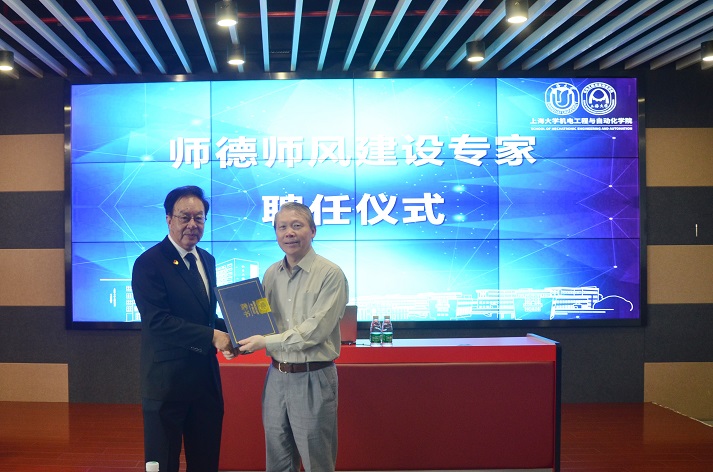 “师德师风建设专家”,指导学院党委开展师德师风建设工作。机自学院院长费敏锐为曹家麟教授颁发了聘书。