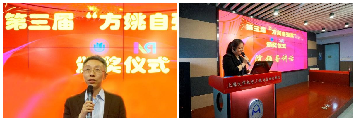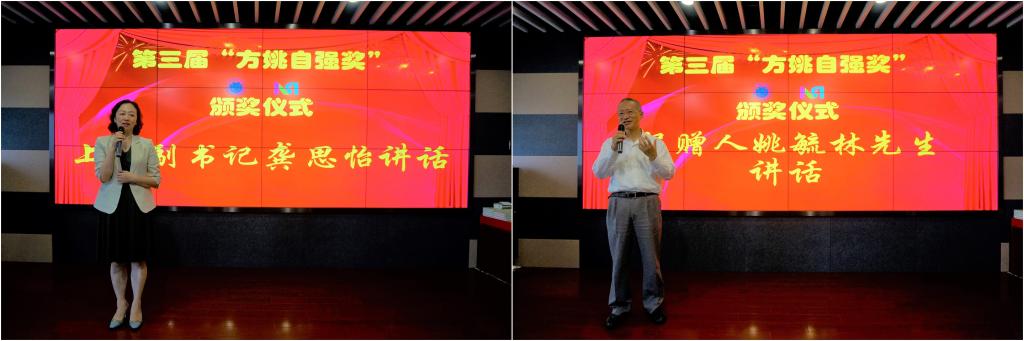 第三届“方姚自强奖”、“方周自强奖”颁奖典礼在宝山校区机自大楼322伯时会堂成功举办。“方姚自强奖”设奖人、碧云资本创始人姚毓林先生,“方周自强奖”设奖人周忻先生代表、易居研究院副院长陈小平女士,上海华谊集团沈国平先生,上海宝信软件公司汪耕先生等出席了本次典礼。