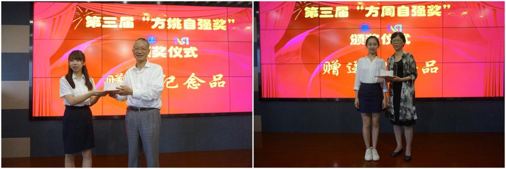 典礼伊始,沈南燕介绍了方姚、方周自强奖的设奖起源与基本情况。接着,刘丽兰宣读了获奖名单,本年度,“方姚自强奖”评选出2名教师、1名博士研究生、6名硕士研究生及5名本科生;“方周自强奖”评选出6名教师、5名硕士研究生及4名本科生。龚思怡、姚毓林、陈小平、于瀛洁为获奖师生颁发奖状与奖金。