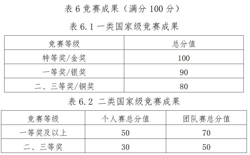 6.除中国国际大学生创新大赛(原“中国国际‘互联网+’大学生创新创业大赛”)外,获奖证书未标明一、二、三等奖时,冠、亚、季军分别等同于一、二、三等奖,同时存在时以一、二、三等奖为加分依据,金奖、银奖等其他获奖等级相同处理。