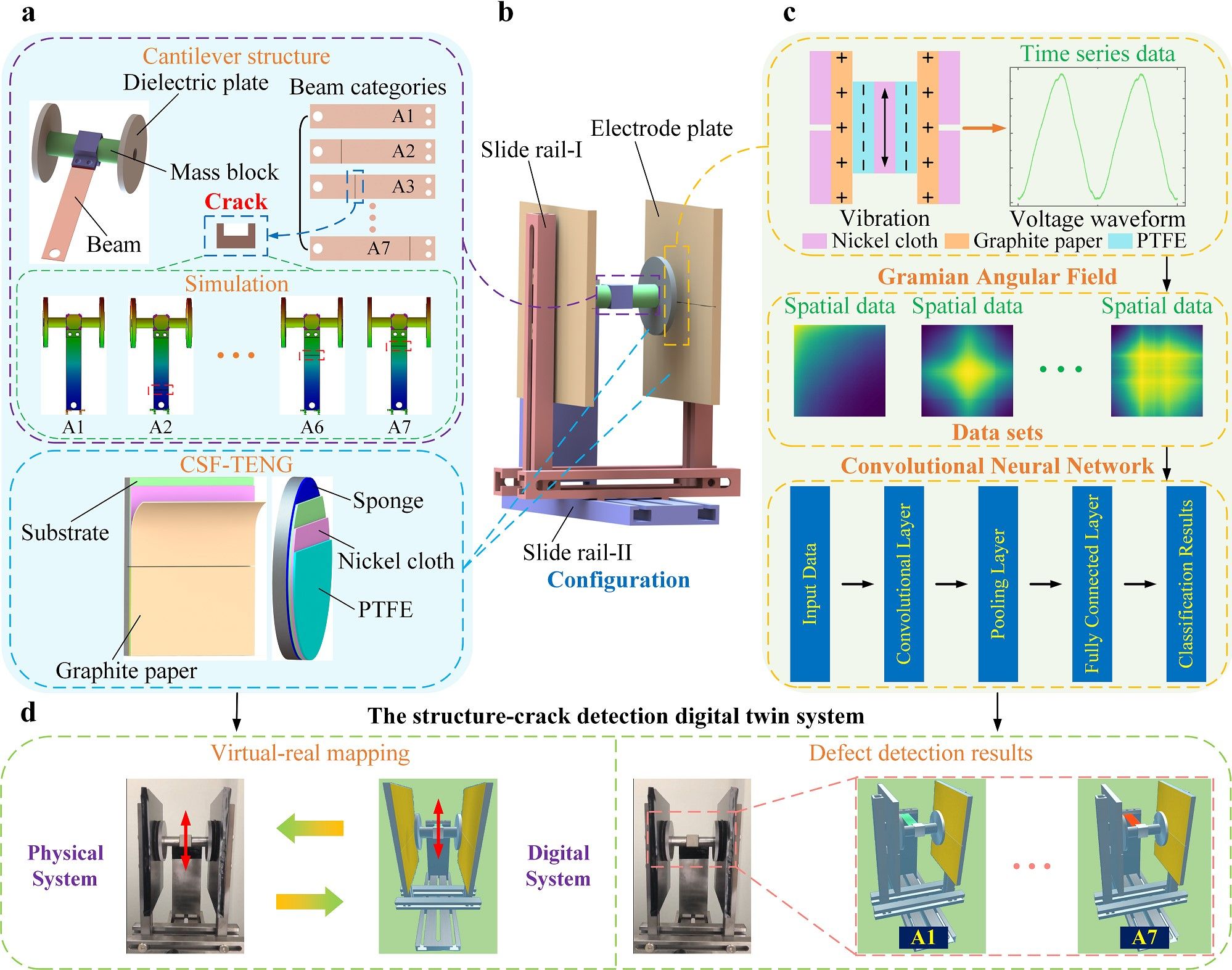 近日,无人艇研究院李忠杰副研究员课题组、机电工程与自动化学院刘丽兰教授与计算机工程科学学院谢少荣教授合作在国际著名期刊《Advanced Science》(IF:15.1)上发表题为“Structure-crack Detection and Digital Twin Demonstration based on Triboelectric Nanogenerator for Intelligent Maintenance”的研究论文。