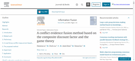 近日,机电工程与自动化学院精密机械工程系刘树林教授团队在计算机科学信息系统和硬件体系结构双领域Top 1期刊《信息融合》(Information Fusion,中科院一区,双Top1期刊,IF=17.564)上发表题为《基于复合折扣因子与博弈论的冲突证据融合方法》的研究成果。博士生刘晓阳为第一作者,刘树林教授为论文通讯作者,188金宝搏中国官网
