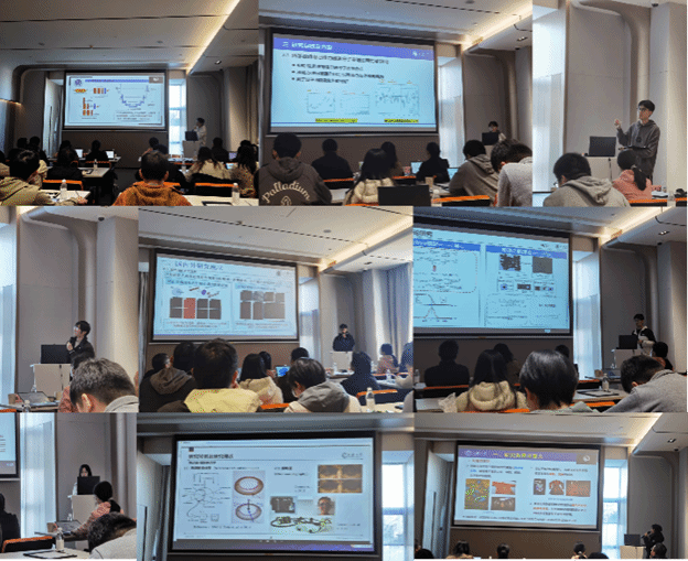 在随后的学术报告环节,沈彬、刘子昂、钱沈云、张腾飞等多位研究生展示了他们在精密光学和人工智能领域的最新科研成果。报告内容涵盖了多个前沿课题,诸如基于超表面的径向剪切干涉测量技术、文物表层多信息集成重建软件设计与应用、便携式三维眼动跟踪技术研究以及耦合航天器数字孪生技术的人工智能应用等。除光学与人工智能领域的创新研究外,微波无损检测方法和新型微纳模拟技术的引入,也为论坛增添了诸多亮点。