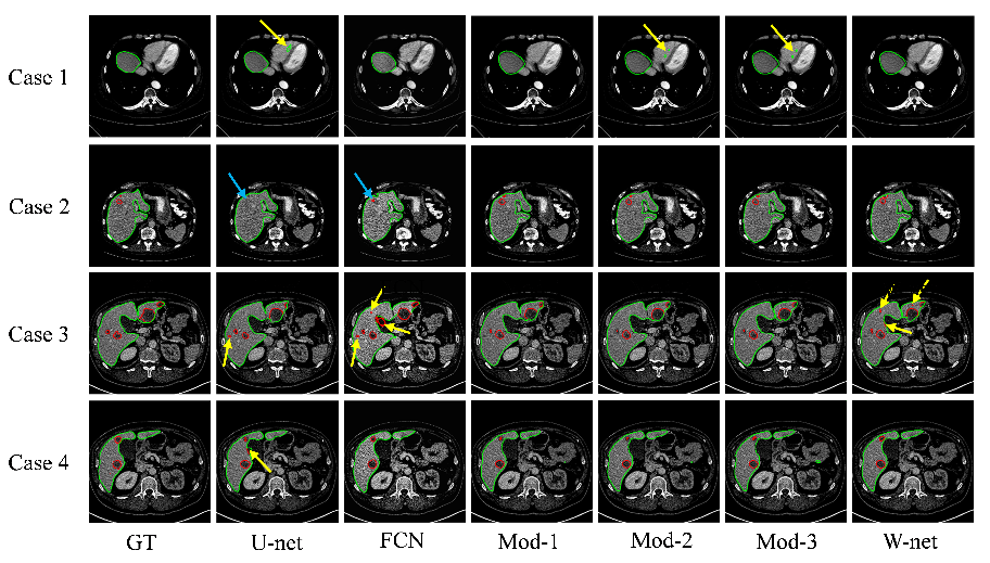 在文章中,作者分析了当前的全卷积神经网络(FCN)都是基于单张CT图像进行肝脏和肿瘤的分割,未充分利用CT图像的序列间信息,而3D网络虽然充分利用了序列间信息,但是硬件和时间成本相对较高,普适性较差。针对以上问题,作者提出了新的分割策略,可在较低的硬件和时间成本下从不同层面提升肝脏和肿瘤的分割效果。其中策略A将Bi-ConvLSTM作为U-net的后置处理环节,通过引入序列信息来纠正U-net的分割结果,分别对比了模型的深度、宽度以及残差结构对模型性能的影响;策略B将序列融合环节直接融入到U-net的特征提取过程中,并构建了“W-net”的端到端模型。实验结果表明,策略A的分割结果倾向于缩小肿瘤区域,适用于肝脏肿瘤的消融手术规划,以防止在穿刺过程中损害肝内大血管等重要组织;策略B倾向于扩增肿瘤区域,适用于肝癌的早期筛查,可全面发现隐患,降低漏诊率,对于早期小肿瘤的分割效果尤其显著。作者的探索角度具有一定的新颖性,为肝癌的精准分割做出了一定的贡献,也为其他部位的病灶分割提供了参考。
