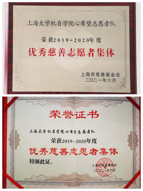 获得2019-2020年度上海市慈善基金会“优秀慈善志愿者集体”(188金宝搏中国官网
