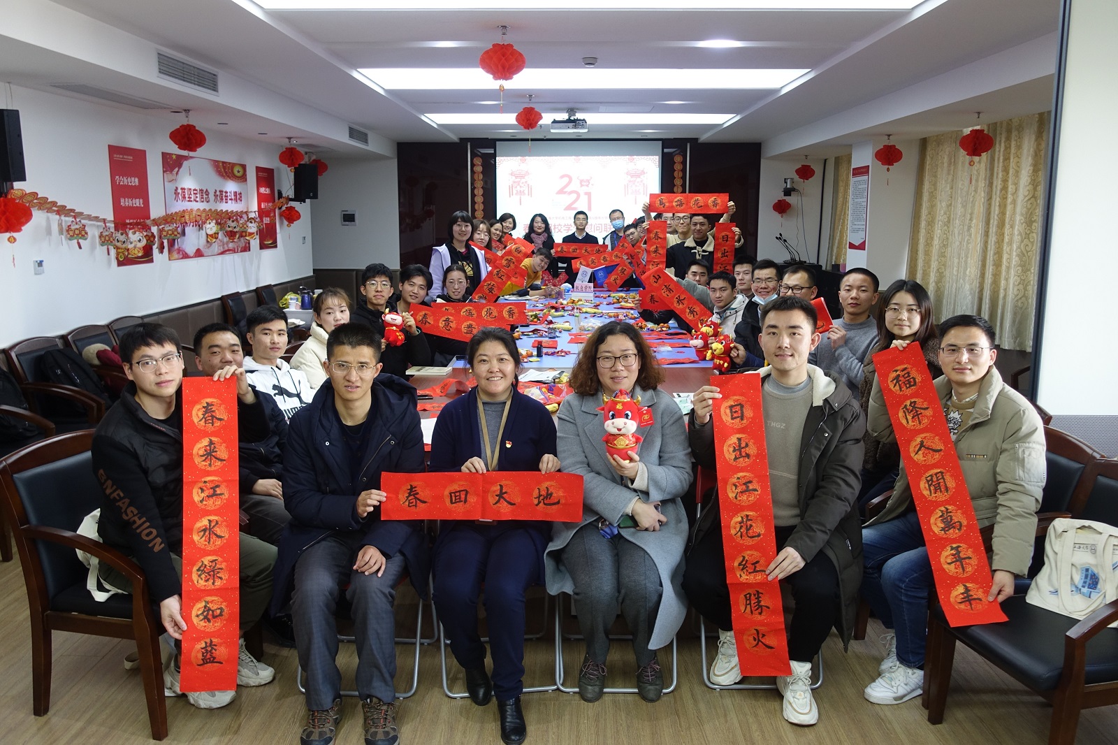紧接着是今天的重头戏——写春联环节。学院为大家精心准备了宣纸和毛笔,许久不用毛笔写字的同学纷纷好奇地提起笔,在红色的对联上一笔一划写下新春的祝福。老师、同学齐参与,“你方写罢我登场”。在温馨的乐曲声中,现场欢声笑语不断,大家也为提笔留下“墨宝”的同学献上真挚的赞扬。传统的书法果然凝聚着最浓厚的年味。