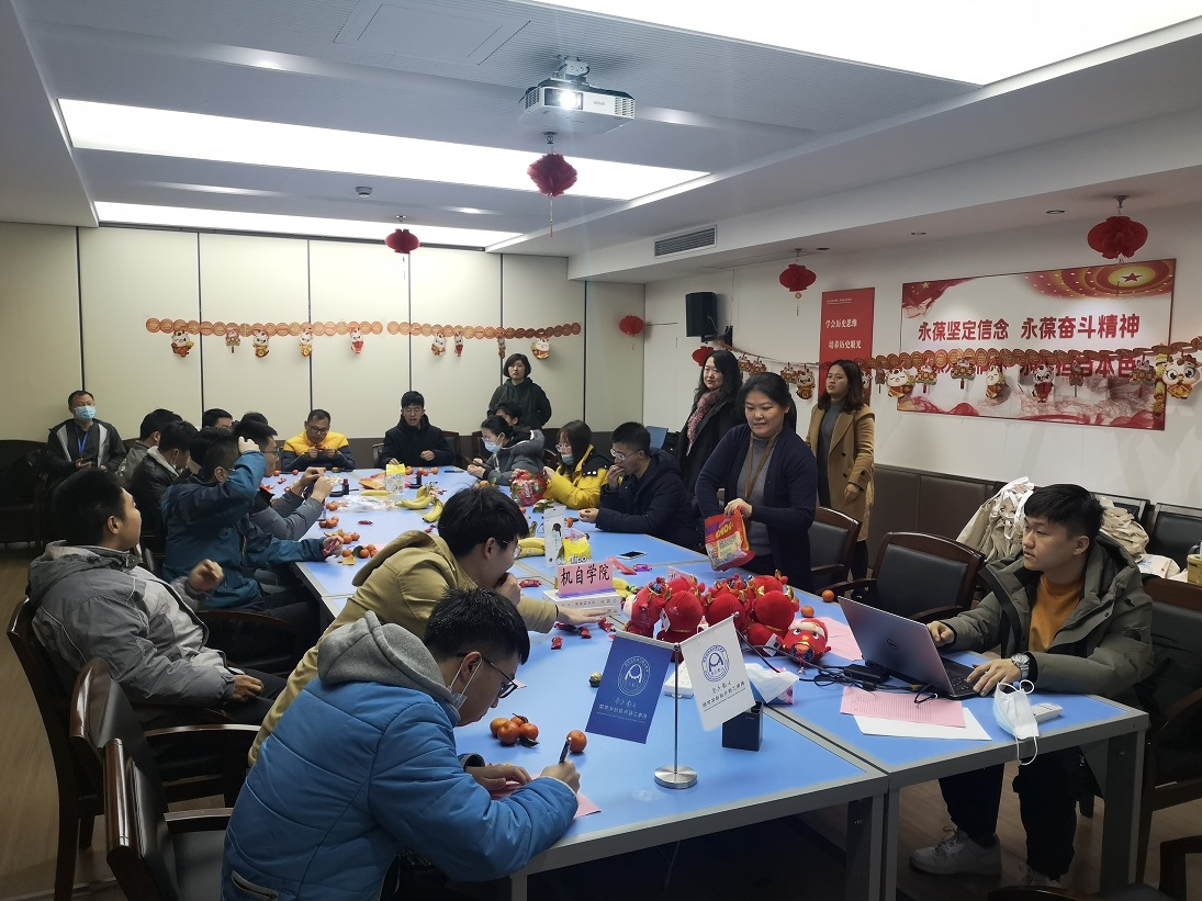 参观结束后,全体师生移步机自学院604会议室,参加今天最重要的环节——机自学院、钱伟长学院留校学生联欢座谈会。机自学院党委书记于瀛洁、党委副书记仇静豪,钱伟长学院党委副书记沈青松,以及留校学生的辅导员们共同参加了此次活动。活动伊始,在喜气洋洋的新春音乐中,主持人、机自学院辅导员李阳光向同学们介绍了联欢座谈会的各项环节设置,希望大家踊跃参与,赢得大奖。接着,仇静豪与沈青松副书记分别为大家送上了新春祝福。虽然大家因为疫情的原因无法回家过年,但学校和学院是大家最坚实的后盾,希望大家在学校也能过一个平安祥和的春节。