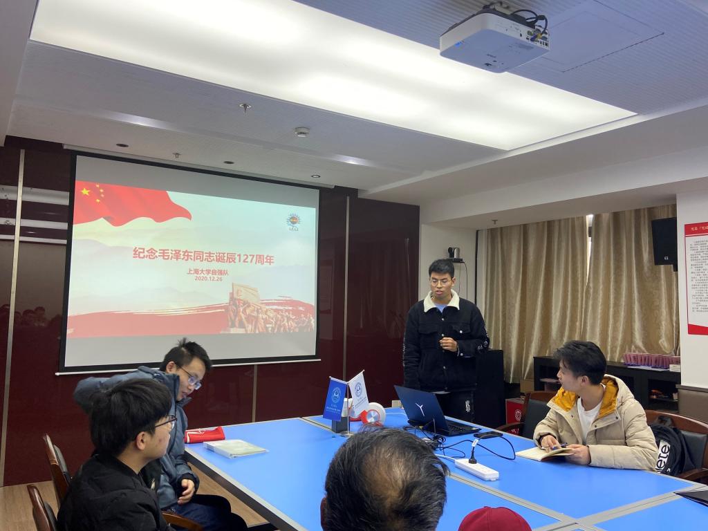12月26日下午,机自学院自强队临时党支部在校本部东区机自大楼604会议室举行纪念毛泽东同志诞辰127周年主题党日。机自学院党委书记于瀛洁,自强队临时党支部指导老师黄慎之出席了活动。在自强队临时党支部书记研二的林城和自强队学生负责人、研二的曾环宇的带领下,自强队临时党支部的部分党员、积极分子和自强队队员共约40人参加了本次纪念活动。纪念活动由临时党支部书记林城主持。