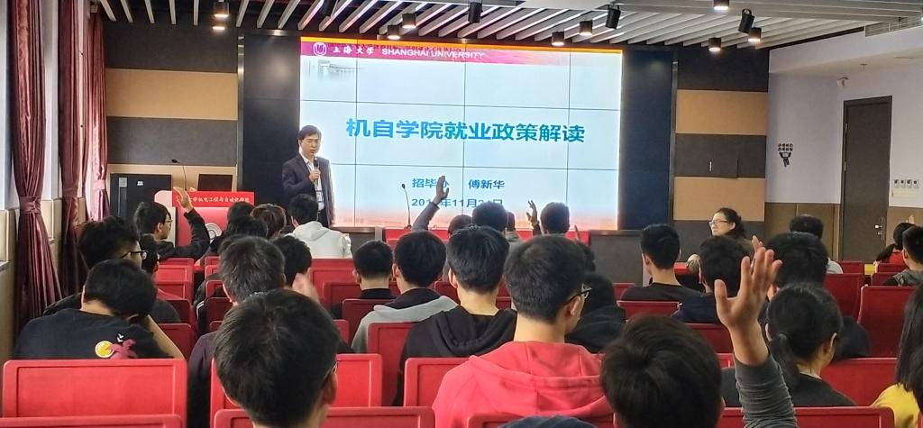 11月24日上午10点,机自学院集智讲坛第八十八讲、创新创业实践讲座在宝山校区机自大楼伯时会堂顺利举行。本次活动特别邀请到招毕办的傅新华老师担任主讲嘉宾,为在座的16级机自学院的学生进行就业政策的解读。