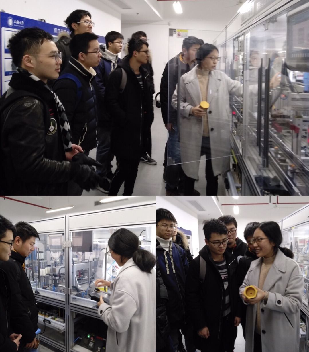 机自学院机器人系统参观学习。学生们来到机自大楼202B实验室,参观了“智能互联机器人柔性装配系统”。精密机械系胡慧娟老师对装配系统进行了演示和讲解。