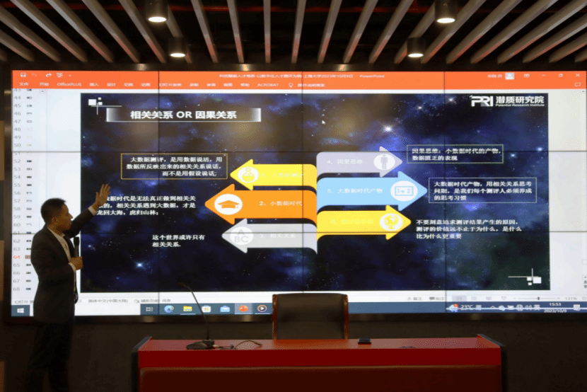 本次讲座话题围绕因材施教与用人之长、元宇宙VR与大数据测评、Chatgpt与AI招聘技术以及相关性、混杂性、抽样性四方面内容展开。刘院长回顾了人才测评的八类工具和人员素质测评的四大假设,并介绍了人才评价中心(Assessment Center,AC)所使用的多项技术。随着大数据、人工智能的发展及其各个领域的应用,明确了大数据人才测评新技术的特征——数智化,并从数字化世界、数字化降维、数字化相关三个方面进行了详细解释。刘院长强调了人才测评在人才培养和人才筛选中的重要地位、从这些角度引导学生确立正确的学习观念和工作观念,扣好学术生涯的“第一粒扣子”。