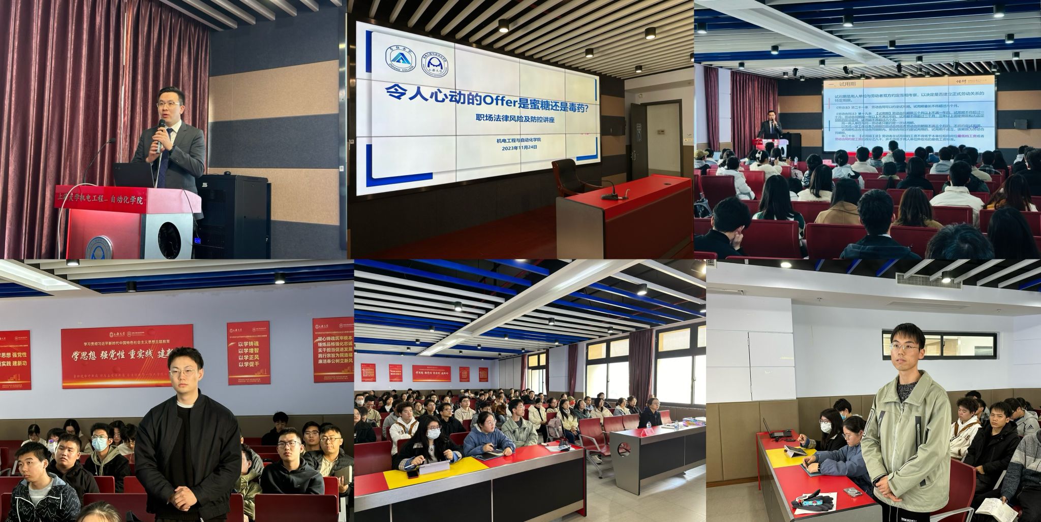 优秀校友宋辉律师,围绕劳动合同法相关知识展开。讲座内容新颖实用,深受本研学生的热烈欢迎,百余名同学积极报名。精机系党总支副书记马文静、电气工程系党总支副书记孟蓉组织本次活动。