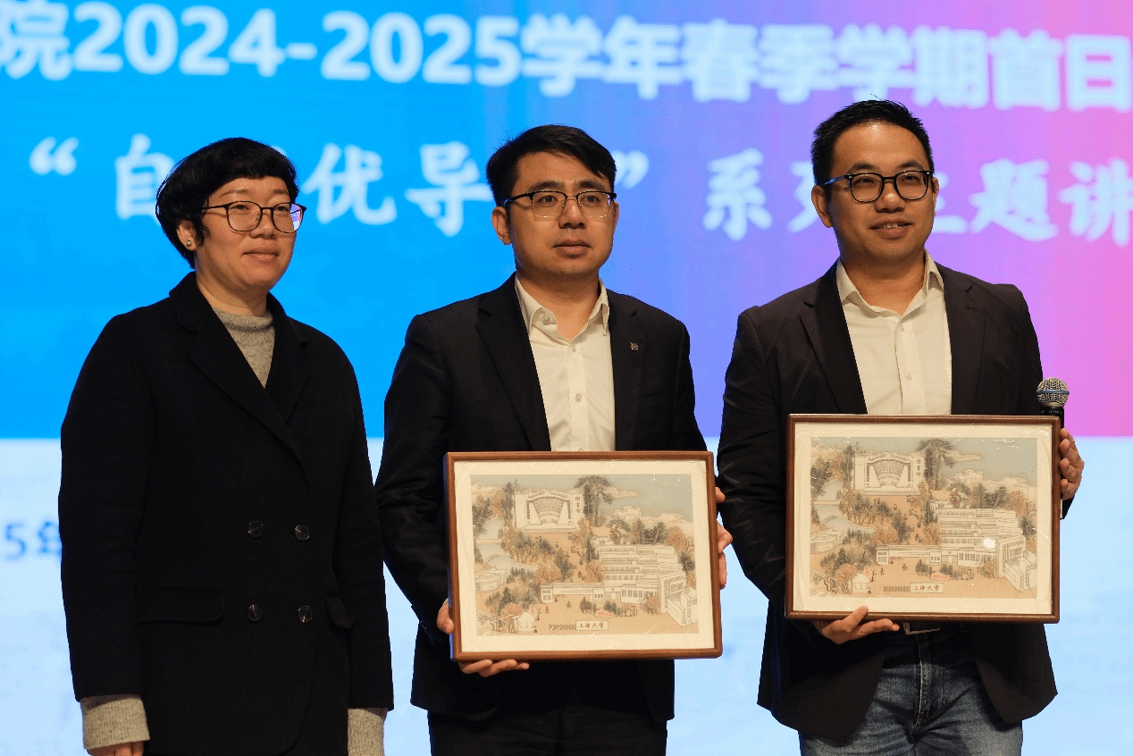 最后,学院向两位校友赠送了学院纪念礼品,希望“产学接力”,助力新工科人才培养。