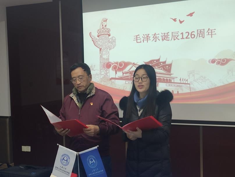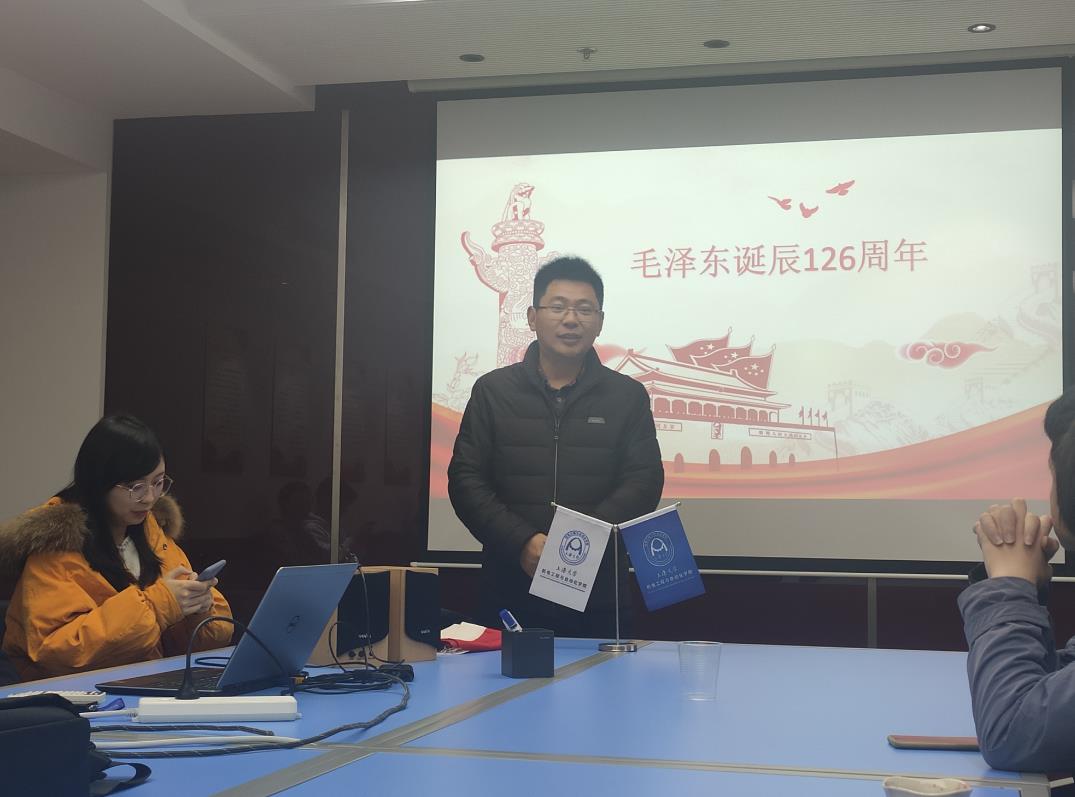 12月26日下午,机自学院临时党支部在校本部东区机自大楼604会议室举行毛泽东同志诞辰126周年主题党日。机自学院自动化系党总支书记王灵老师,自动化系副主任顾申申老师,研究生院学位与学科点建设办公室杜大军老师,自强队临时党支部指导老师黄慎之出席了活动。自强队核心老队员宁羽翔担任活动主持,自强队临时党支部的部分党员、积极分子和自强队队员30余人参加了本次纪念活动。