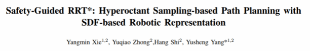 自动化系本科生钟玉桥(学术导师:解杨敏、史航、杨雨生)在机械臂运动规划领域取得突破性进展,其研究成果《Safety-Guided RRT*: Hyperoctant Sampling-based Path Planning with SDF-based Robotic Representation》被机器人领域国际顶会IROS 2025录用。国际智能机器人与系统会议(IROS)是机器人领域两大顶级会议之一,入选论文代表全球机器人技术前沿水平。2025年会议将汇集全球3000余名学者,展示人工智能与机器人交叉领域的最新突破。