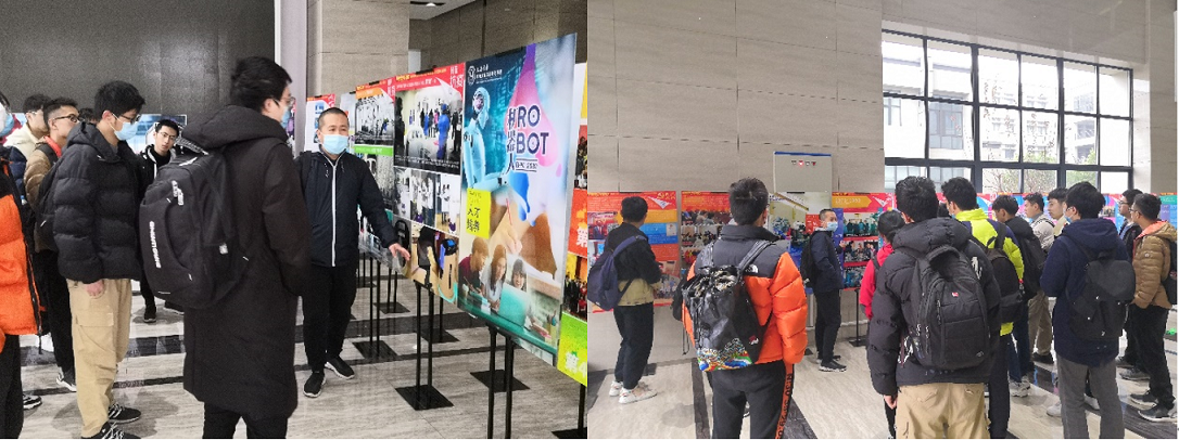 2020年12月3日上午来自《机器人工学》(23326050)20多名本科生到机自大楼大厅参加“机自学院机器人研究历史回顾展”课程思政教育。