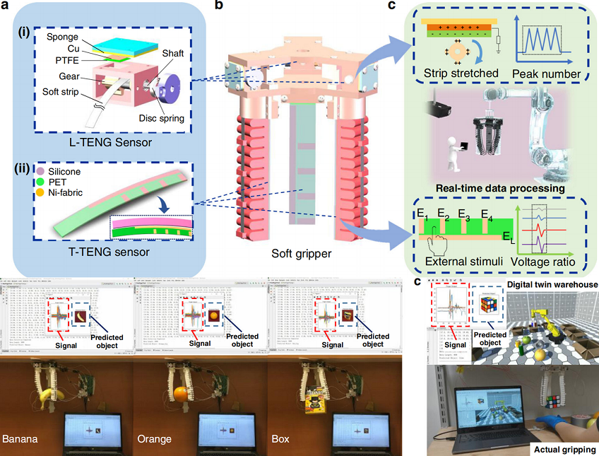 图3 基于摩擦电感知与机器学习的智能软体手爪