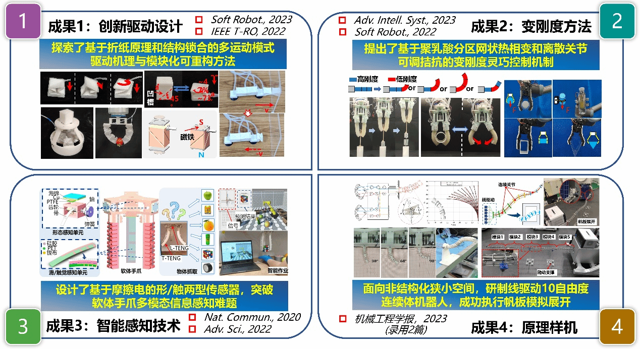(5) Long Li, Fengming Xie, Tianhong Wang, el al. Stiffness-tunable Soft Gripper with Soft-rigid Hybrid Actuation for Versatile Manipulations, Soft robotics, 9(6): 1108-1119. (共同通讯,软体机器人领域顶刊,IF=7.9)